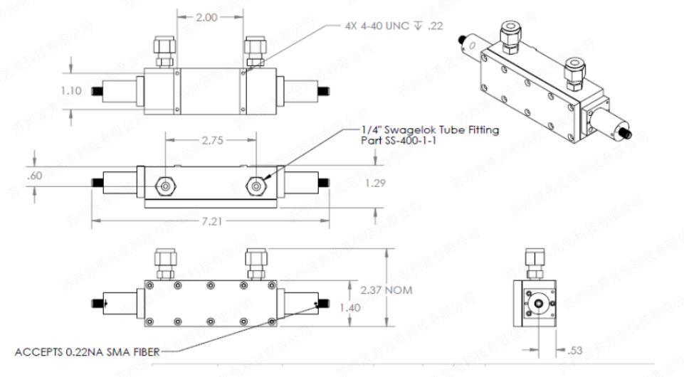 1.流通池有四個安裝孔,底部有4-40螺紋。