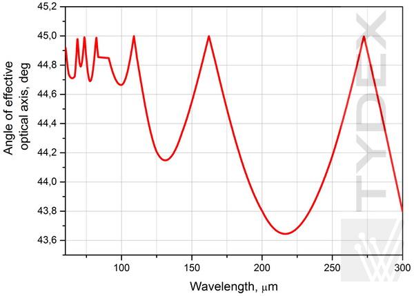 1) ω不是0o,它取決于波長。 我們稱之為“消色差偏振轉換器”(APC)。ω行為的示例如下。